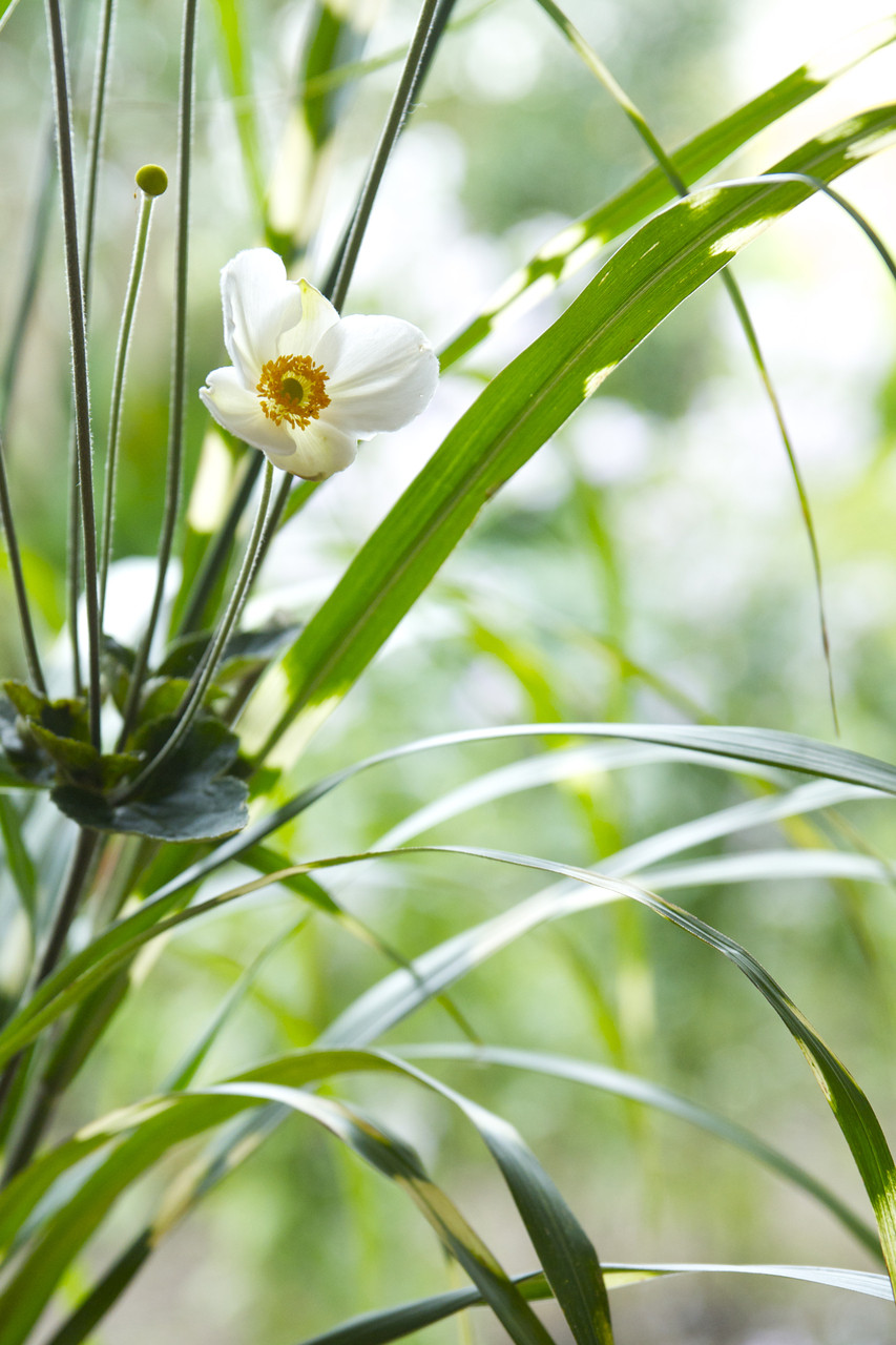 ホタルガヤとシュウメイギクを生けたので、写真を撮ろうと思ったら、ん? 予期せぬ客人が付いてきました。