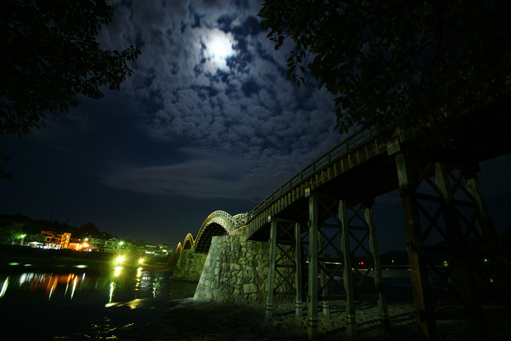 一年でもっとも月がきれいな日。 せっかくだからお月見を兼ねて錦帯橋へ。