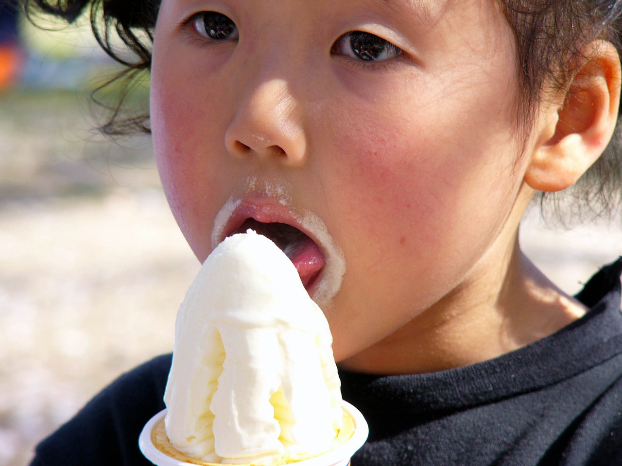 無我夢中でアイスを食べる娘。 トロケちゃいそうな表情がたまらなくかわいい(親ばか)