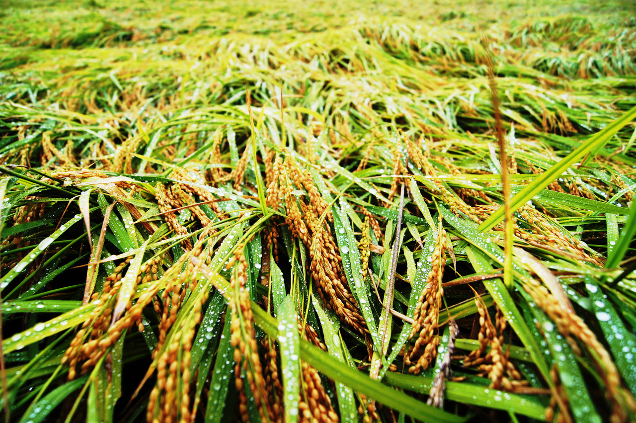 実家の稲です。 強風に倒されました。