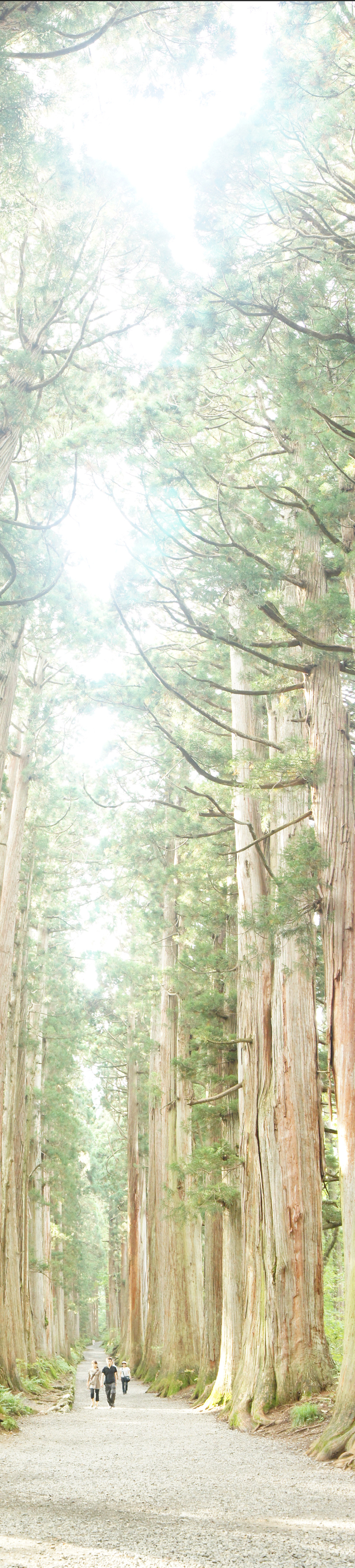 パワースポットとして有名になった戸隠神社の杉並木です。 約400年前に植えられたそうなので1600年頃。徳川幕府が出来た頃でしょうか。 パノラマ機能で巨杉の存在感を感じて頂けると嬉しいです。