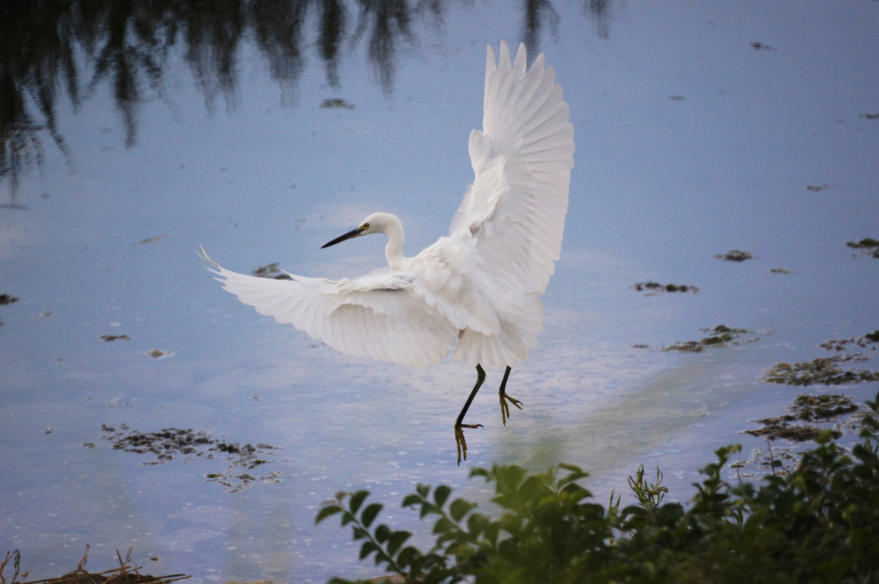 着地の前に翼を広げたところ。