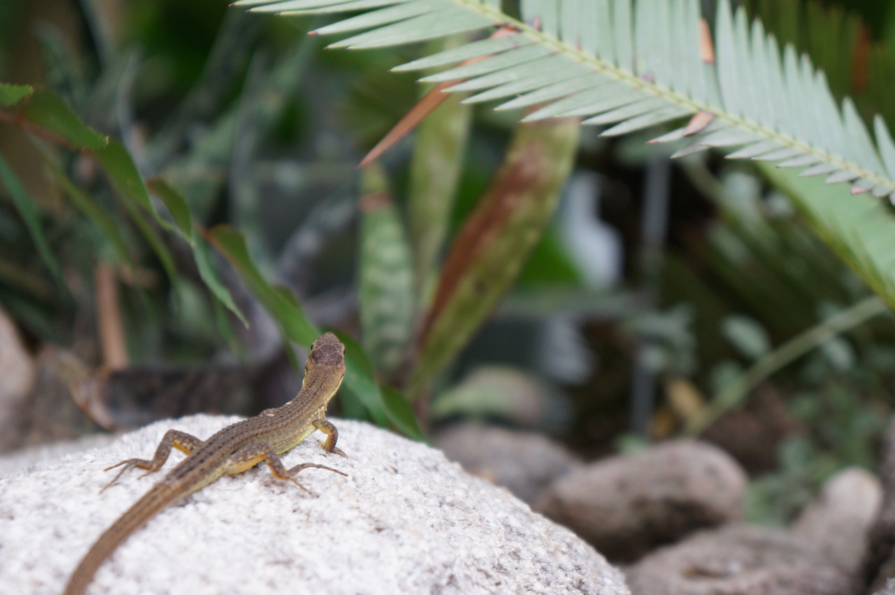 偶然、ヤモリ?と遭遇。動かないうちに慌てて撮った1枚です。 「置物だよ」と言わんばかりのポーズが何とも言えません。撮り終えるとササッと石の陰に隠れてしまいました。