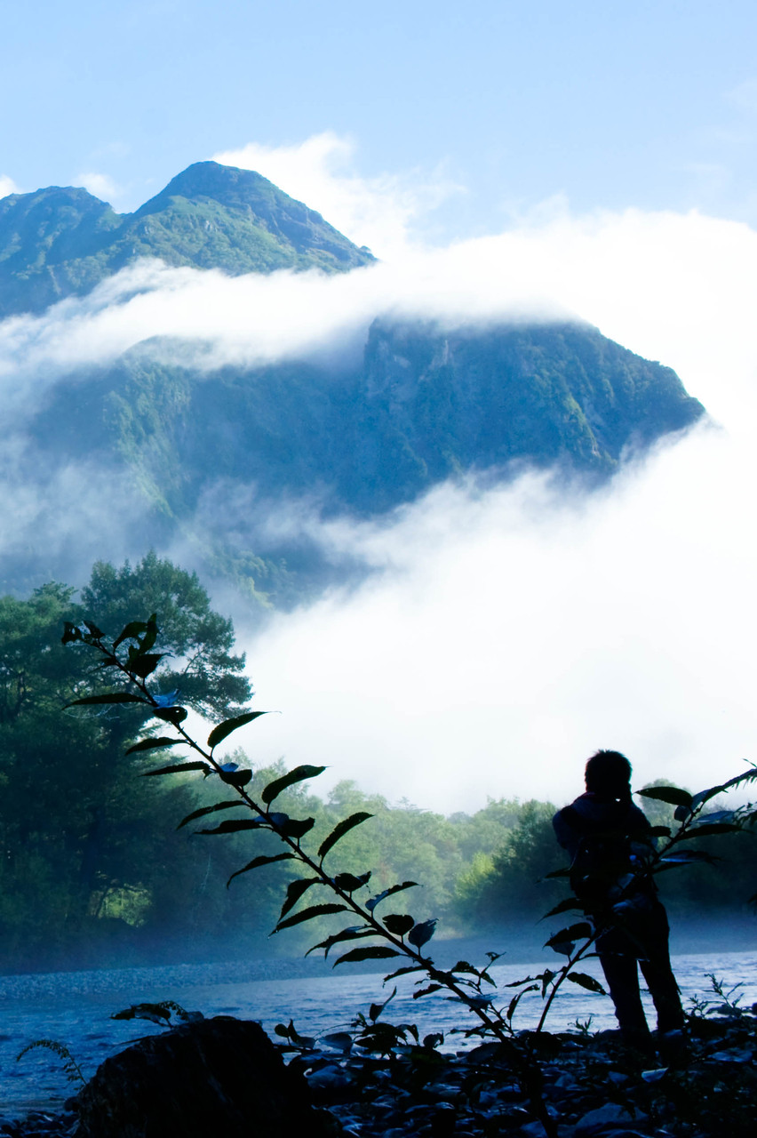 一面霧で真っ白だったのですが、 太陽が出るとともに山脈が! その様子を撮る人を撮る私。
