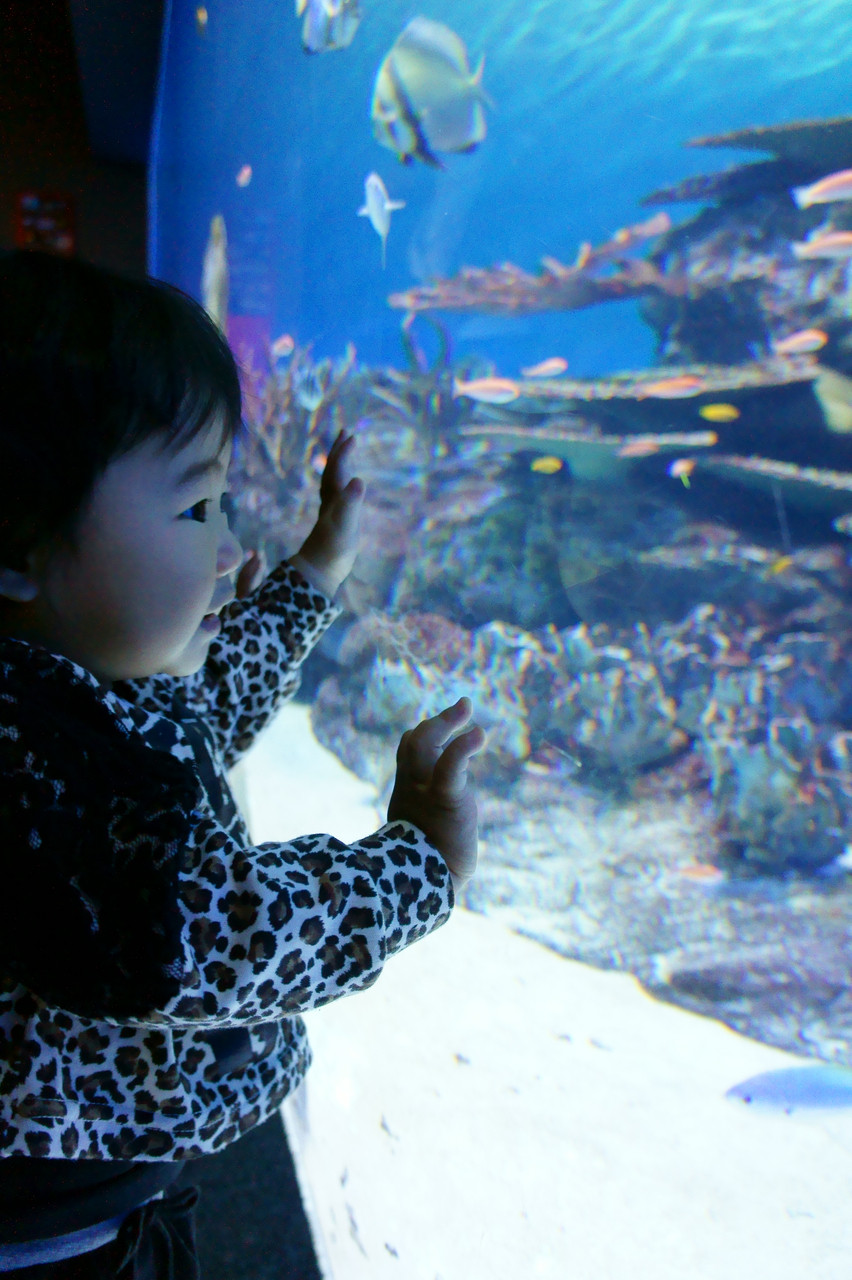 1歳の娘を連れて初めて水族館へ行った時の写真です。 水槽の魚を見ながら目をキラキラさせているのがカワイク(親バカ)て・・・ 彼女の目にはどういうふうに見えていたのかと・・・