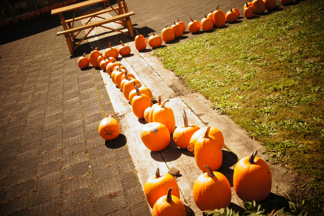 もうすぐハロウィン。 列の先には ハロウィンかぼちゃの美容室。