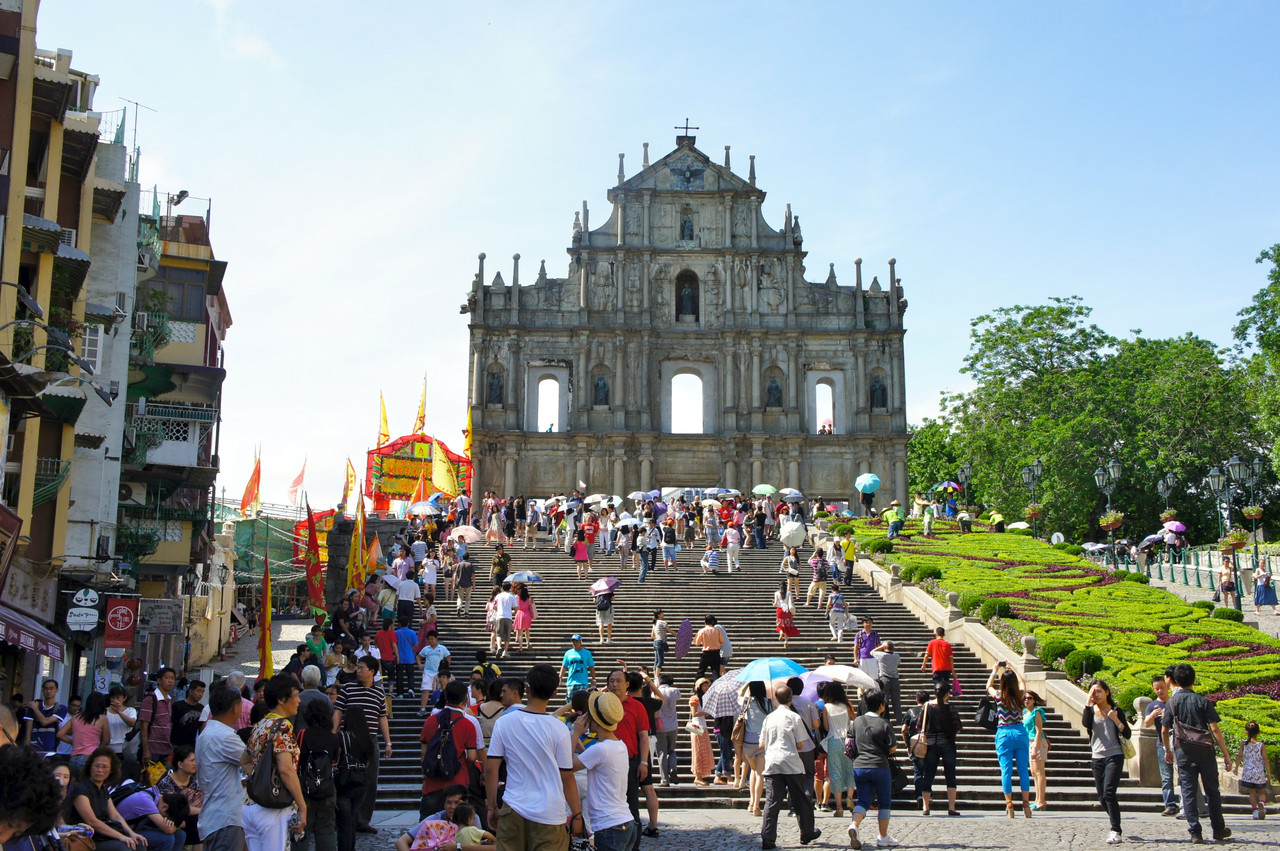 マカオにある、ポルトガルの17世紀の大聖堂の遺跡。
