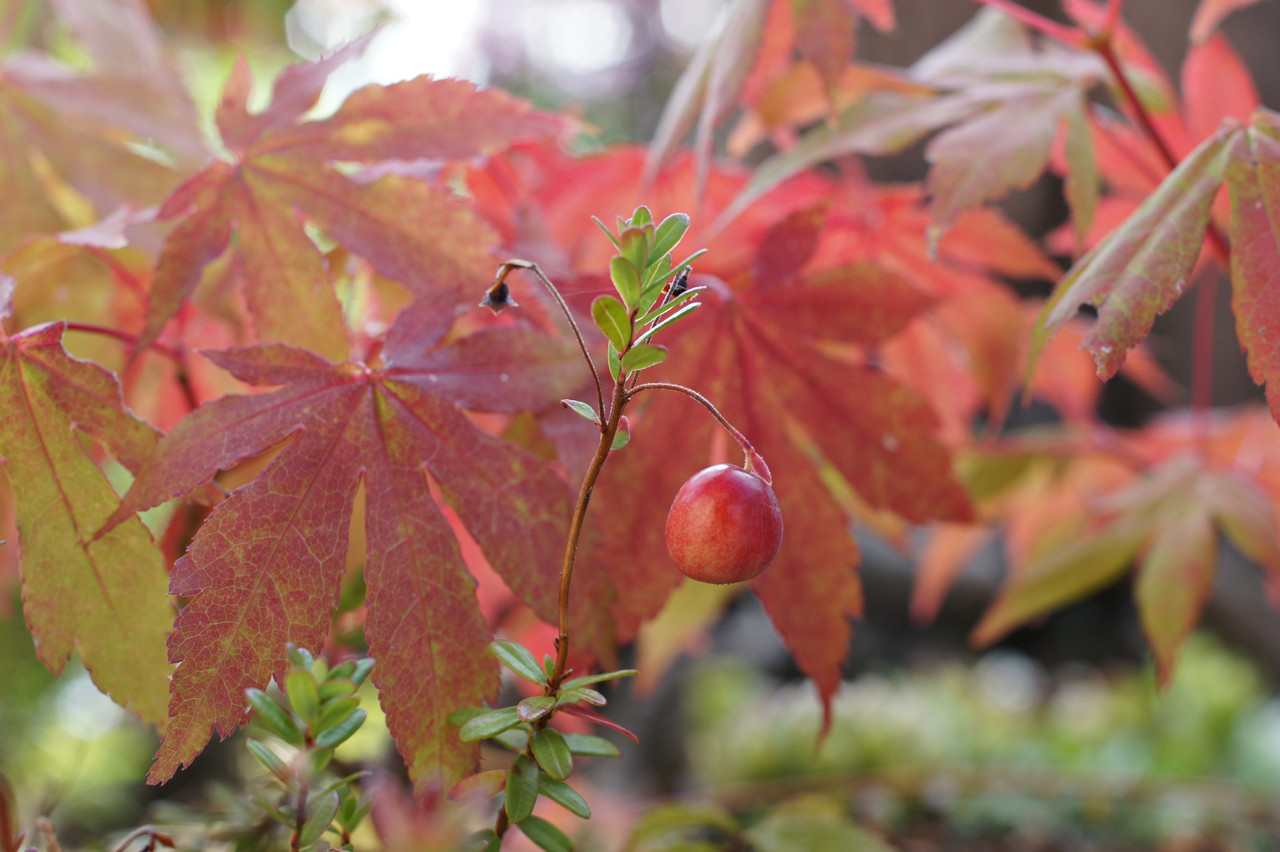 盆栽紅葉とコケモモがすっかり赤色です