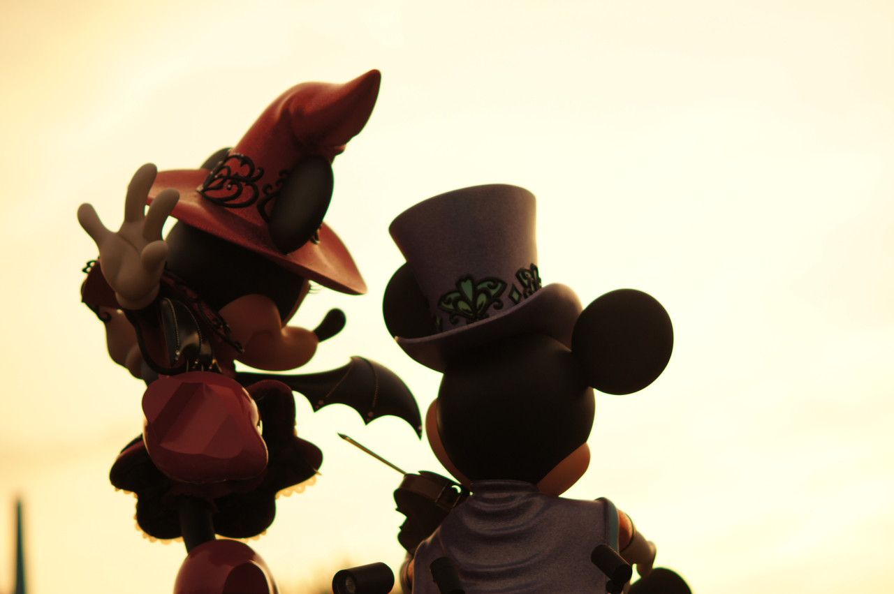 寄り添うミッキーとミニーを後ろから撮ったものです