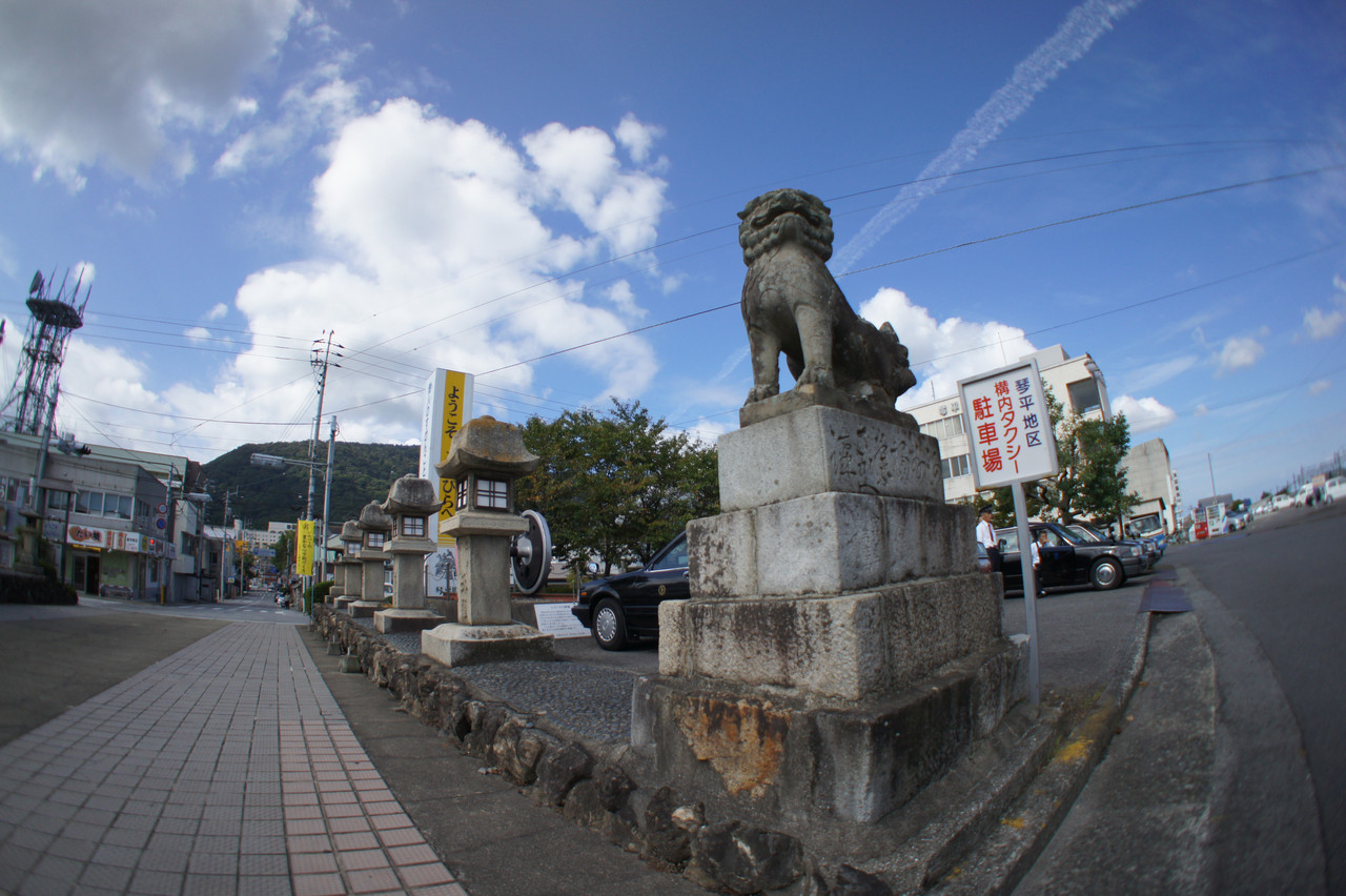 こんぴらさんの琴平駅前の狛犬が偉そうでしょ