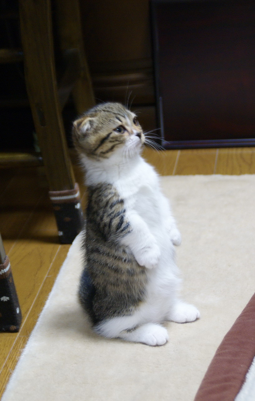 1日に何度でも立って見せてくれます。朝夕にご飯の前に、こうして立ってから 手で頂戴頂戴してからでなきゃご飯を貰えません。