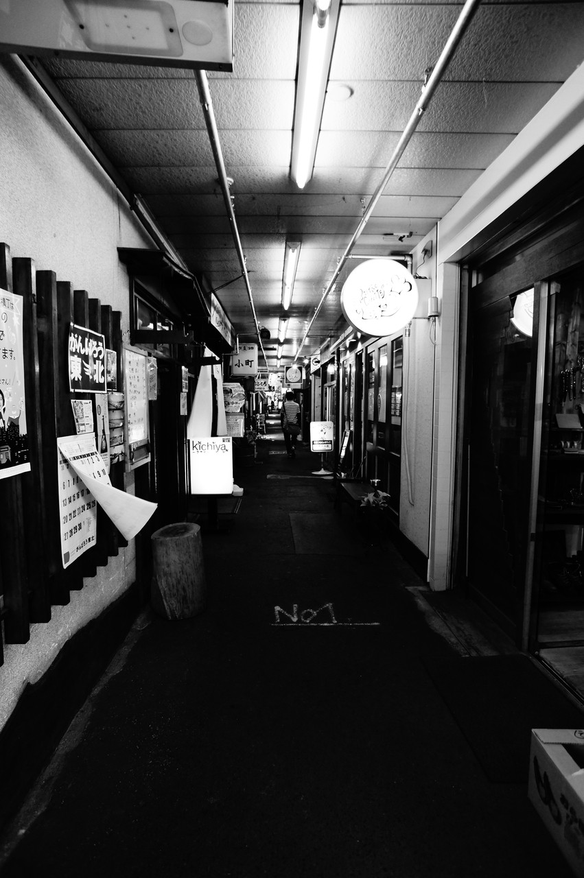 モノクロにするとそれっぽく見えると思われる、そんな場所、NO.1。 壱弐参横丁(いろはよこちょう)。