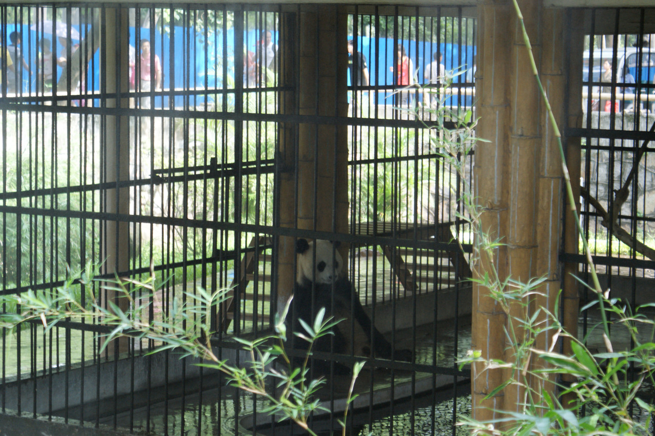 中国ではパンダは国宝ですが、 あまり珍重されている印象はありません。 ぐったりした中年の親父と言う感じです (柵の周りにはたくさんの日本人がいました、日本人はパンダが大好きですね)