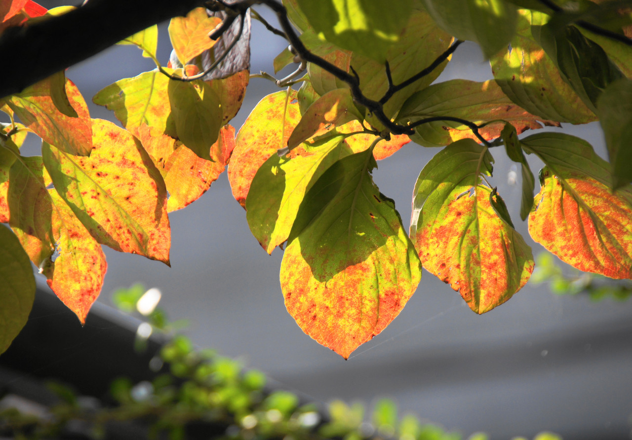 秋も本番木々が色づき始め紅葉の便りが聞かれるこの頃、我が家のハナミズキの葉も模様替えを始めました。