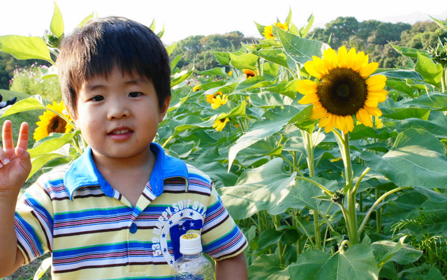 夏の風物詩ひまわりもコスモスと一緒に咲いて綺麗でした。 コスモスはまだ五分咲きくらいでしたが・・・・