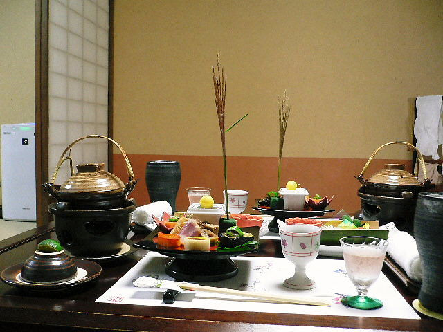 昨年宿泊した奥黒川の旅館で。ほんのり紅色の食前酒と前菜がお月見気分を盛り上げます。土瓶蒸しも楽しみですね。
