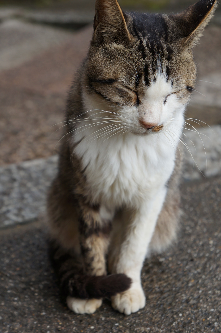 伏見稲荷で見つけたネコがまるでキツネのような顔をしている写真です。