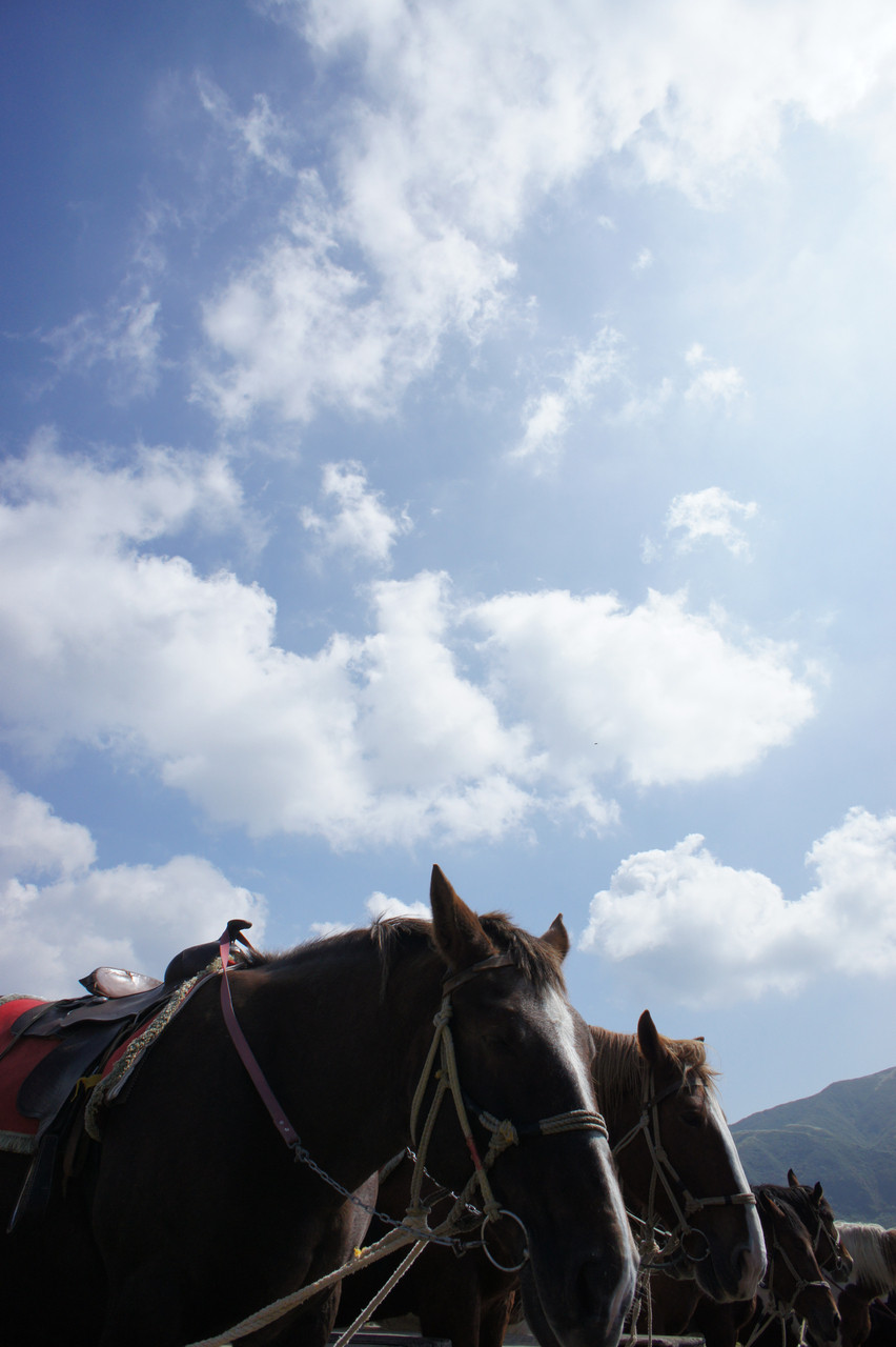 阿蘇・草千里にて お馬さんと広大な青空
