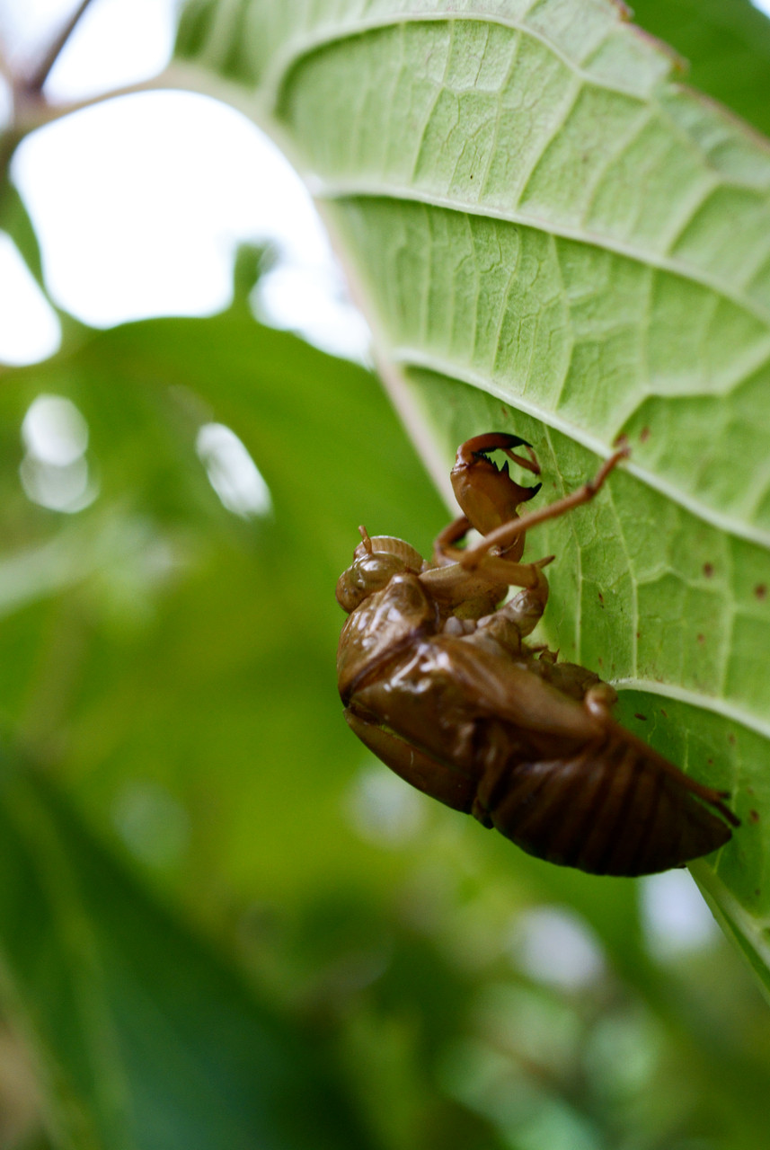 葉っぱの裏にセミの抜け殻を発見。夏の終わりを感じました。