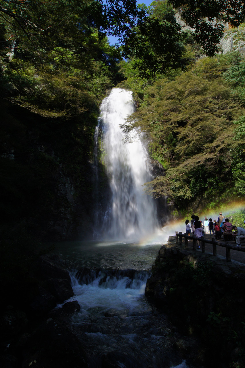 滝にきれいな虹がかかっていました。