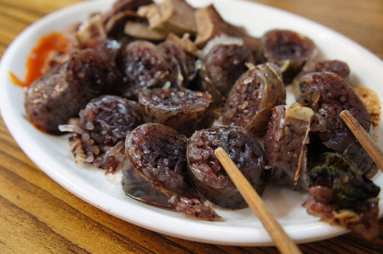 豚の腸に、味付けされたモチモチ麺が詰まっています。 このぷりぷり感^^