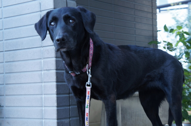 玄関ポーチで、外を眺めているわが家の愛犬です。