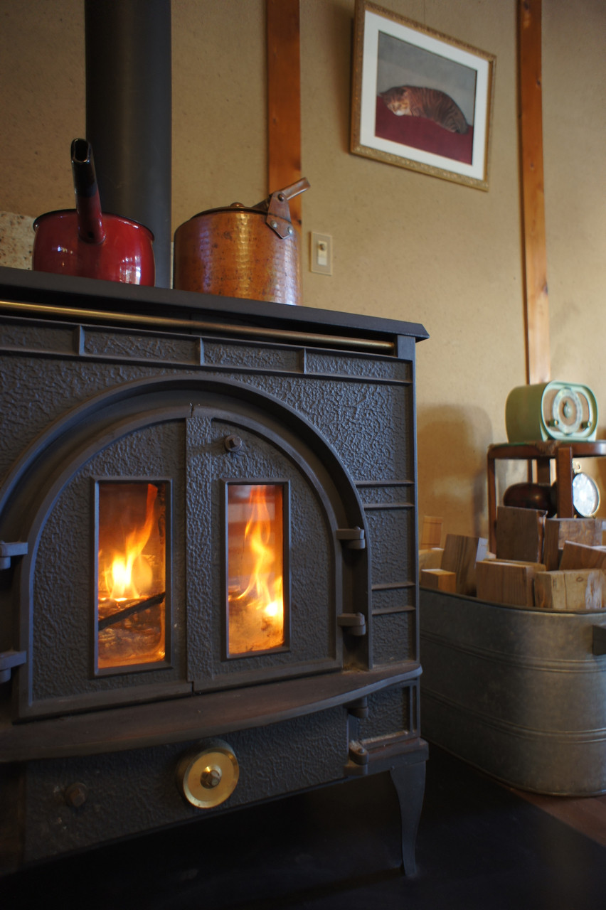 たまに行く、山間にある友達の家では、もう薪ストーブが。 奥のレトロなラジオもいいよな〜。 美味しいコーヒーを、いつも淹れてもらいます。