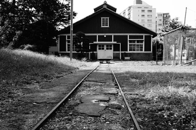 東大農場にて。どこからか始まったレールが廃墟となっているだろう小屋に続いていました。
