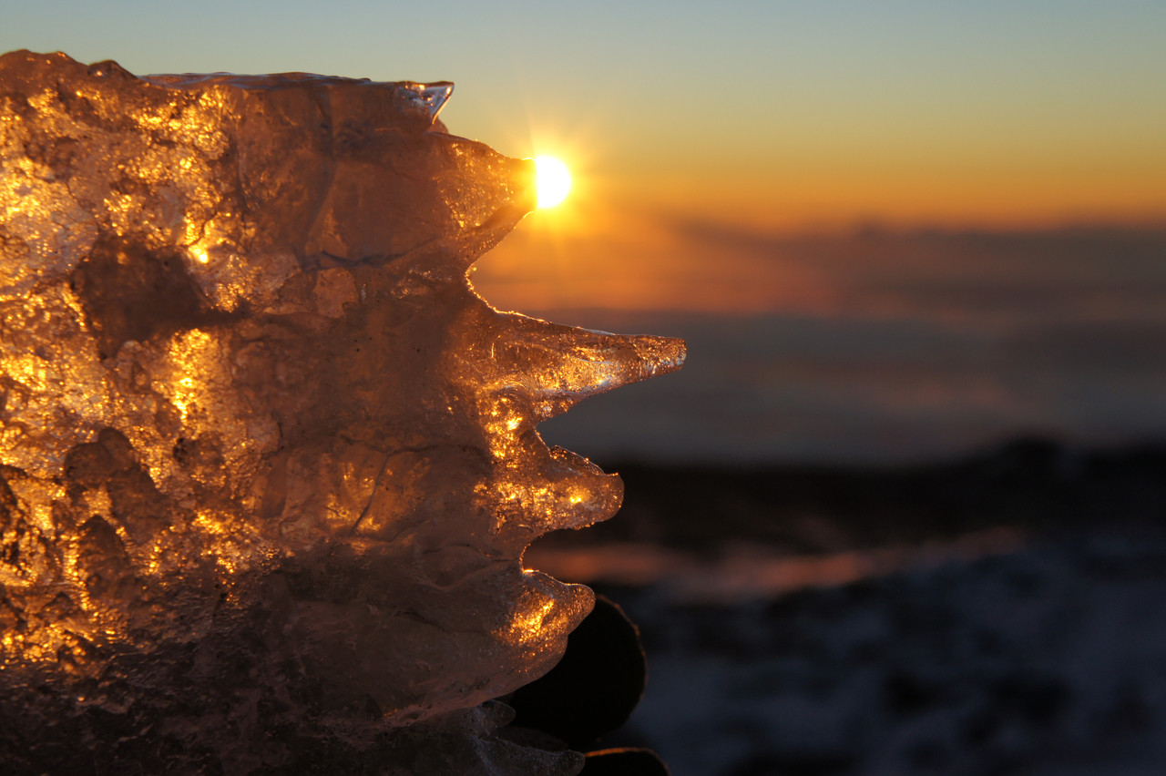 マウナケア山頂での日の出です。 つららが上向きに生えてました。