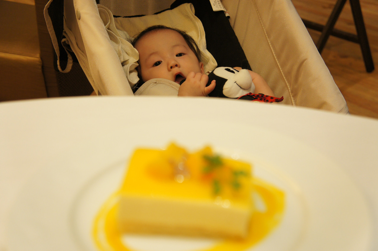 レストランでおりこうさんにしています