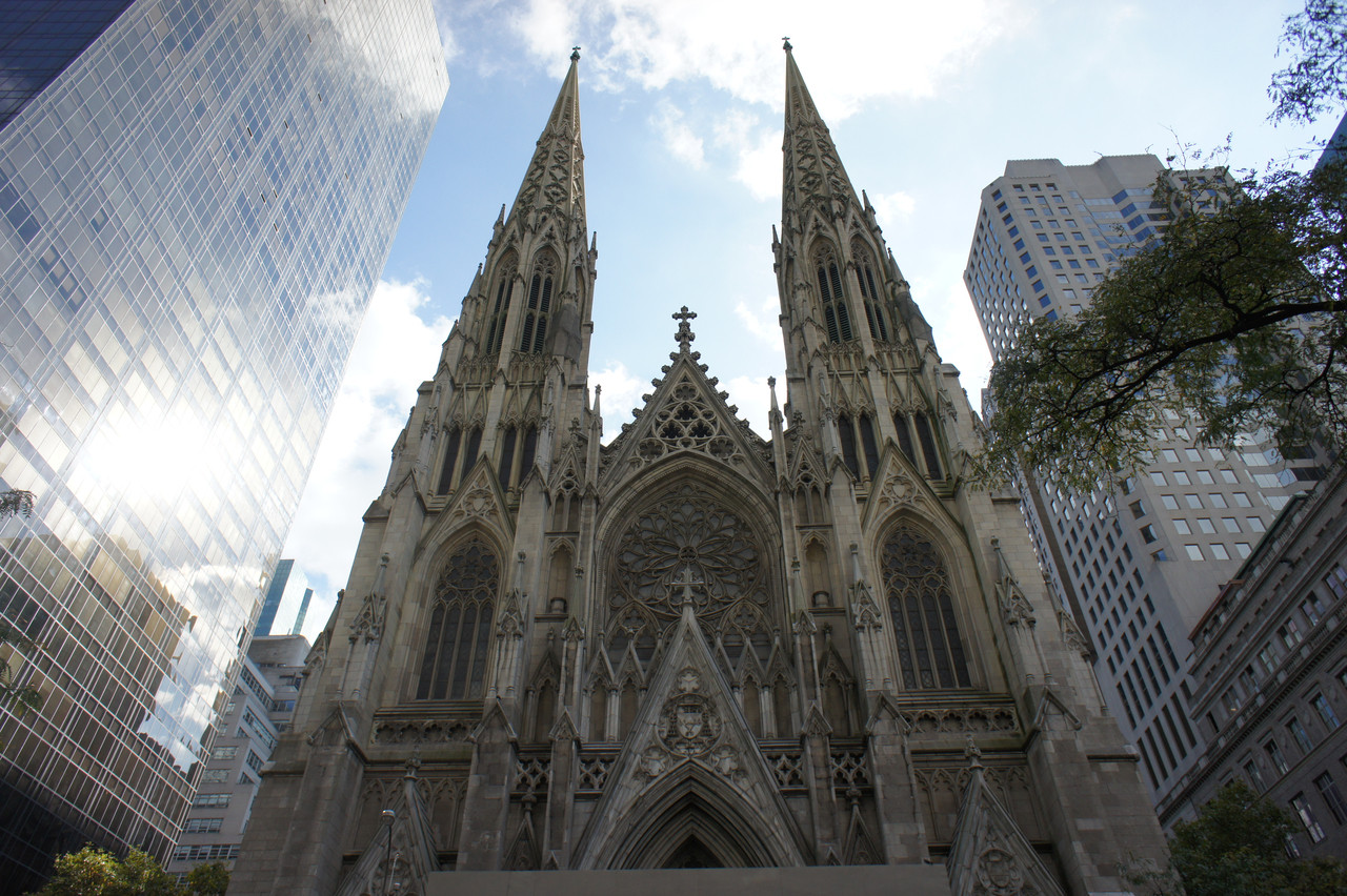 ニューヨークの高層ビルに囲まれて一際存在感を放つ教会