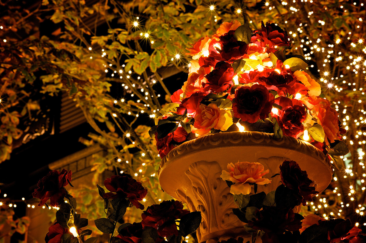 細かなこんぺいとうのような光粒のなかで、 甘い香りが飛んできそうな薔薇。お菓子のよう。 東京丸の内のイルミネーション。