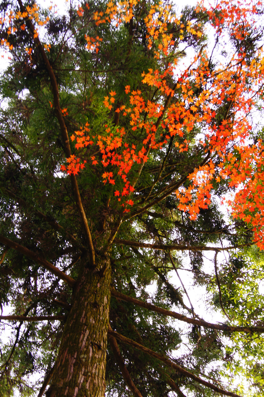 合成みたいに ”取ってつけたような紅葉”ですが、実際のものです。 妙なバランスですよね