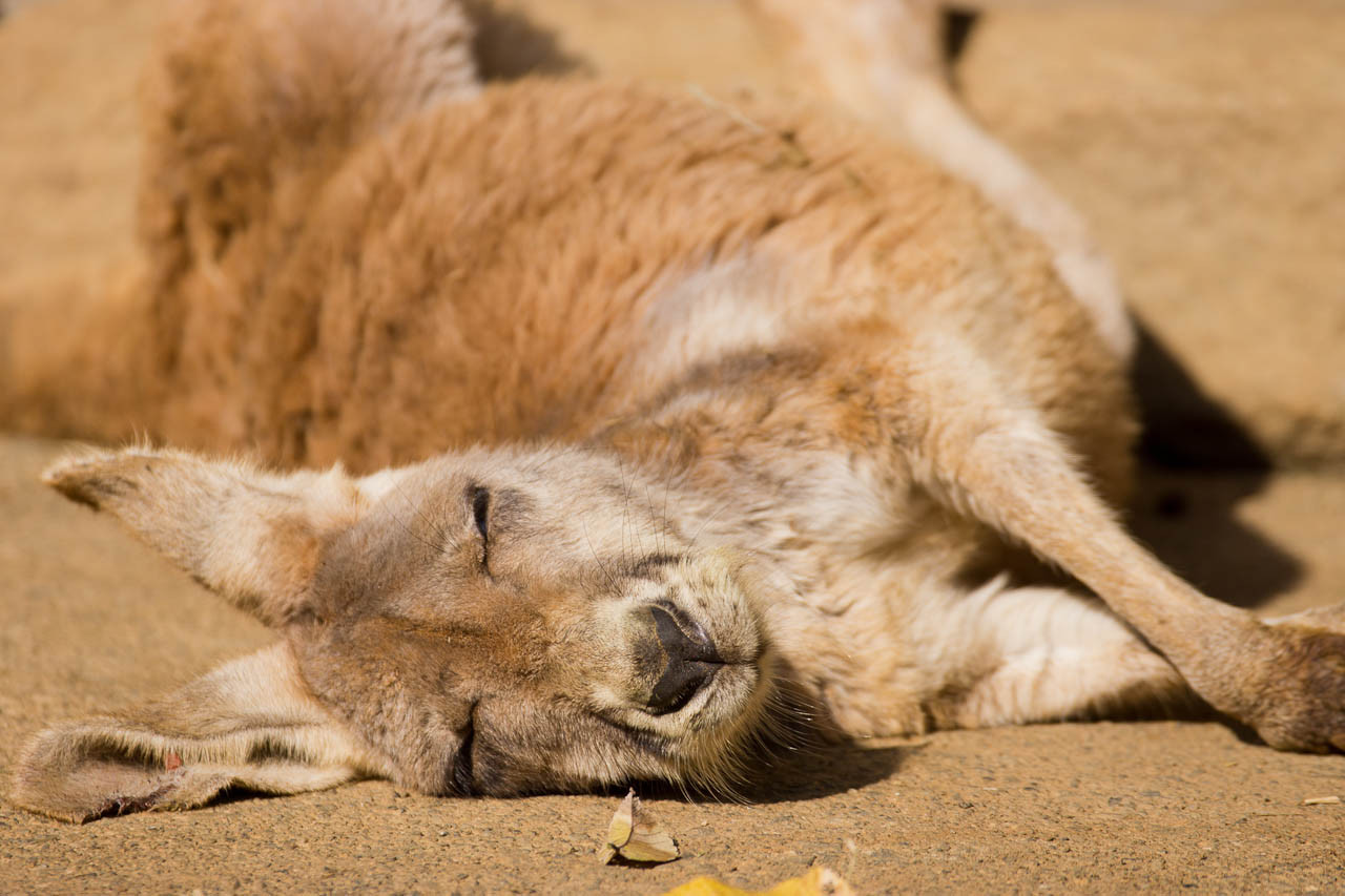 油断しすぎなカンガルーの寝顔。 多摩動物園より