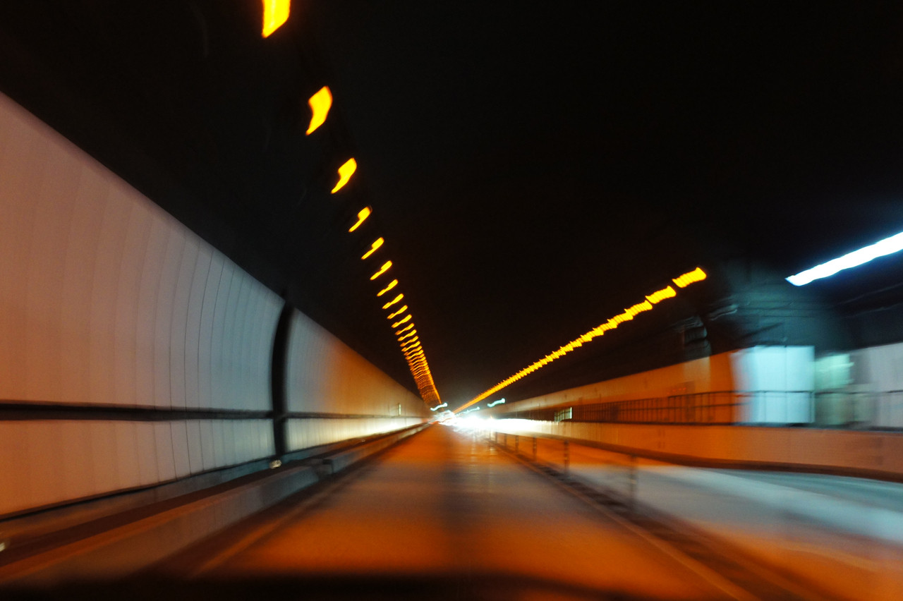 高速道路のトンネルを車の中から撮影しました