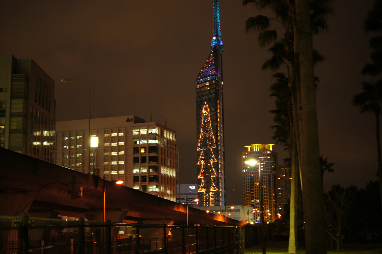 青だらけの福岡タワー