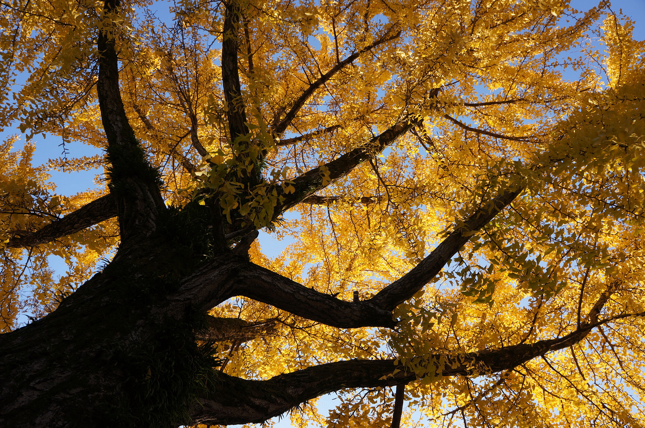 和歌山城のイチョウ。 見事な色づきでした。 真下から見上げると、どっしりしたイチョウに包み込まれるような感覚でした