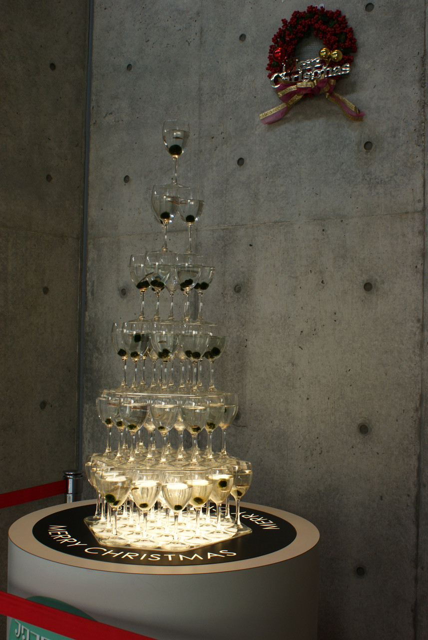 水族館の展示です。 一つ一つのグラスに、マリモが入っています。 マリモって動かないのに、どうして可愛いいんでしょうね?