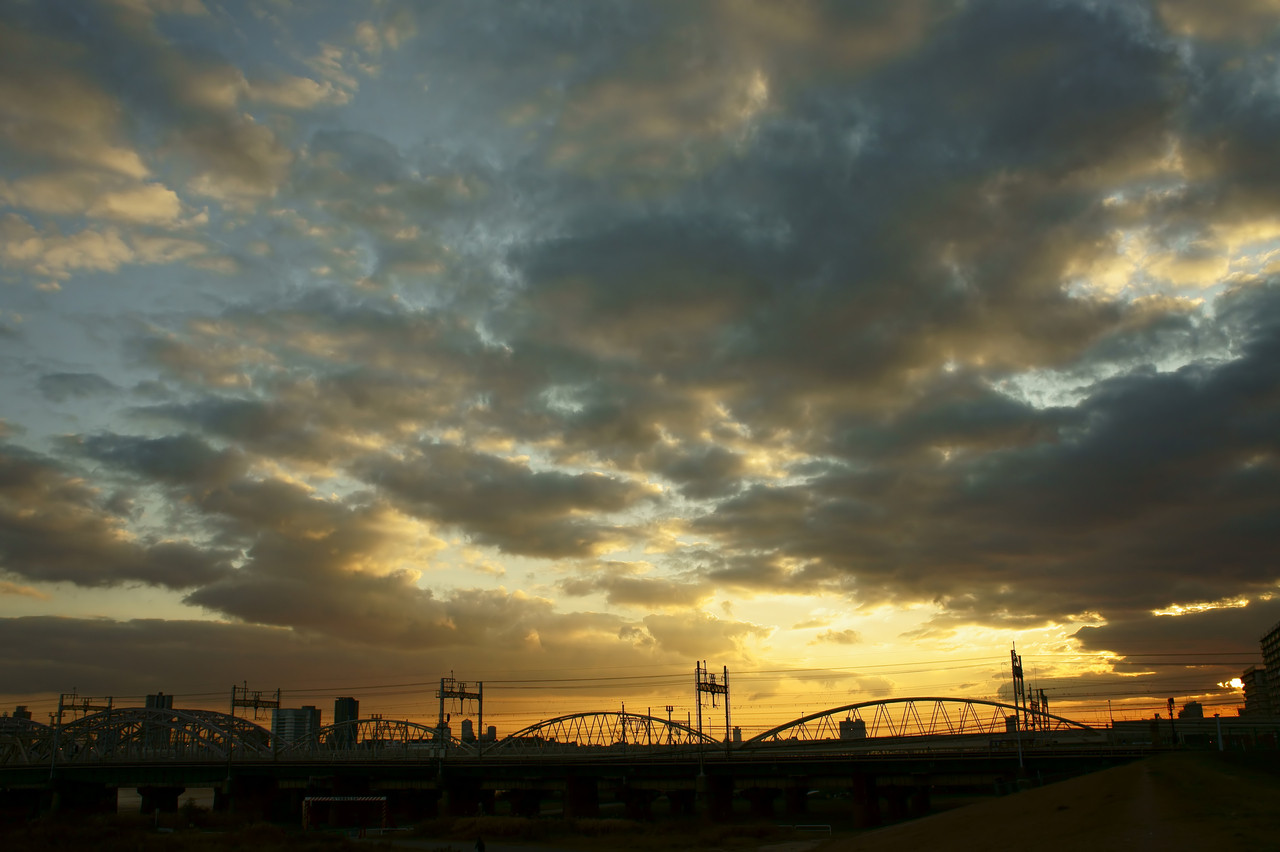 淀川の河川敷にて。 鉄橋は阪急電車のものです。