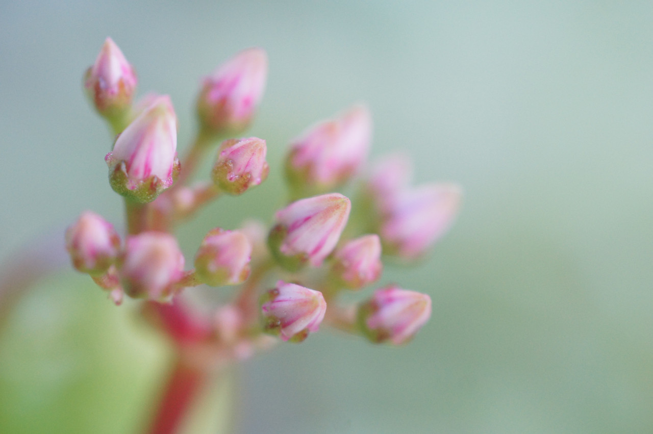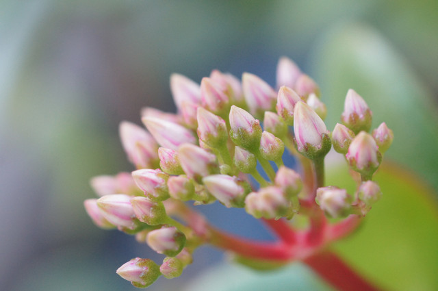 ベランダに置いてある「カネノナルキ」(学名:Crassula ovata)の蕾がほころび始めました。