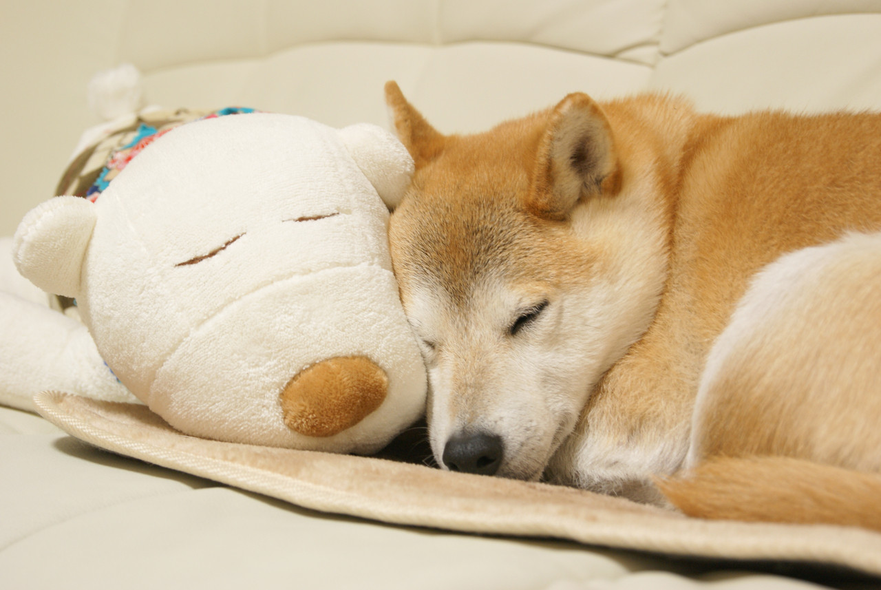 愛犬ココアは、このぬいぐるみが大好きです。 このシロクマのぬいぐるみは3代目。 思いっきり「ガブリッ!」と噛み付いても 振り回して遊んでも怒られないので大好きなのです^^