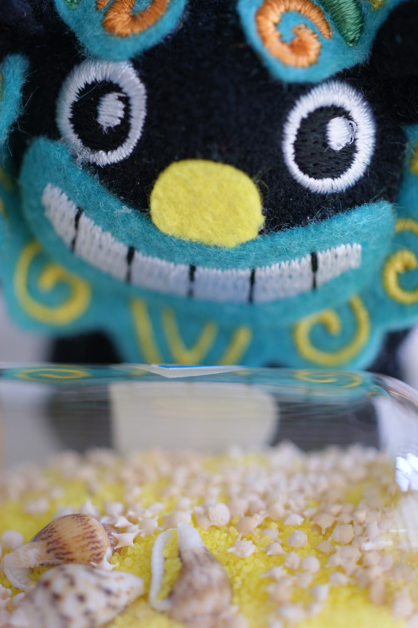 上手いタイトルが思いつきませんでした。^^;) 修学旅行から帰ってきた娘のお土産です。 定番の「星の砂」と「シーサー」の液晶クリーナーです。 7Dに付けるには、ちょっとカワイ過ぎですね。 AF50/2.8MACRO(I)