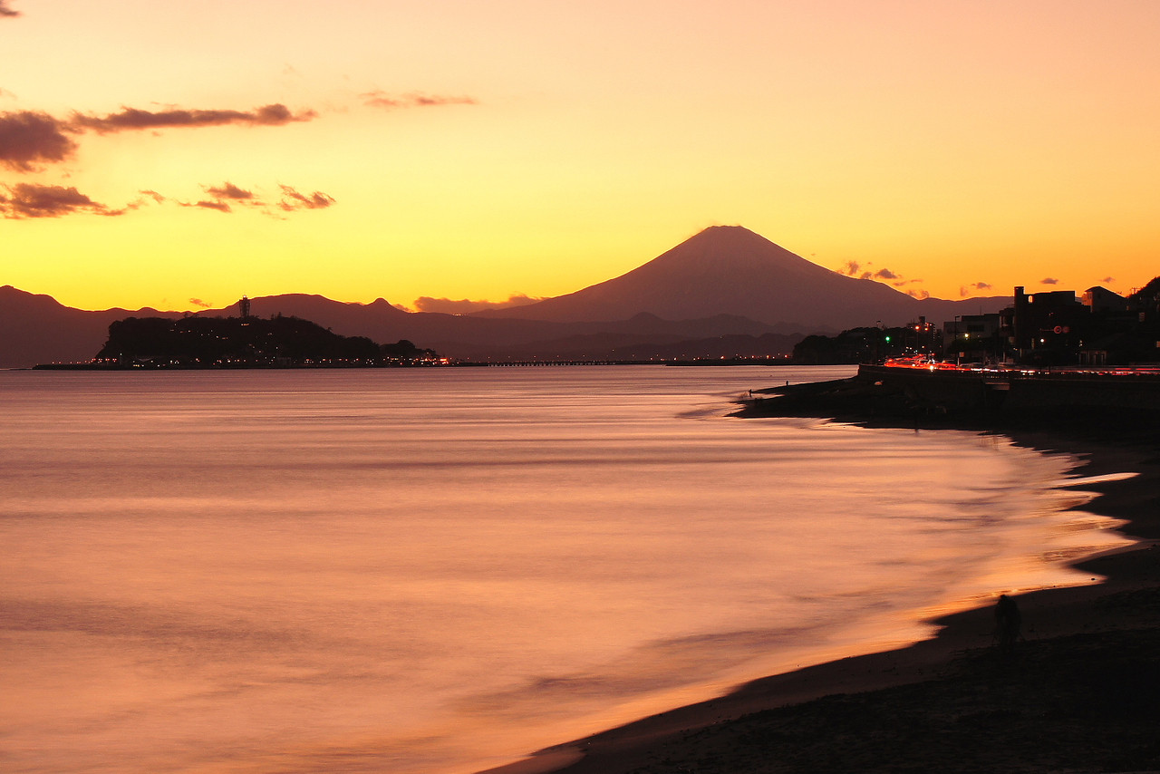 稲村ケ崎からの夕焼け富士