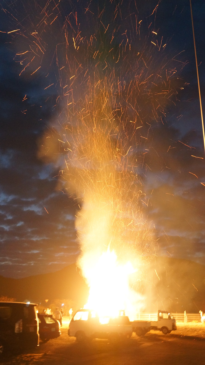 まだ夜も明けていないのに、 突然バチバチと音を立てて燃え上がりました