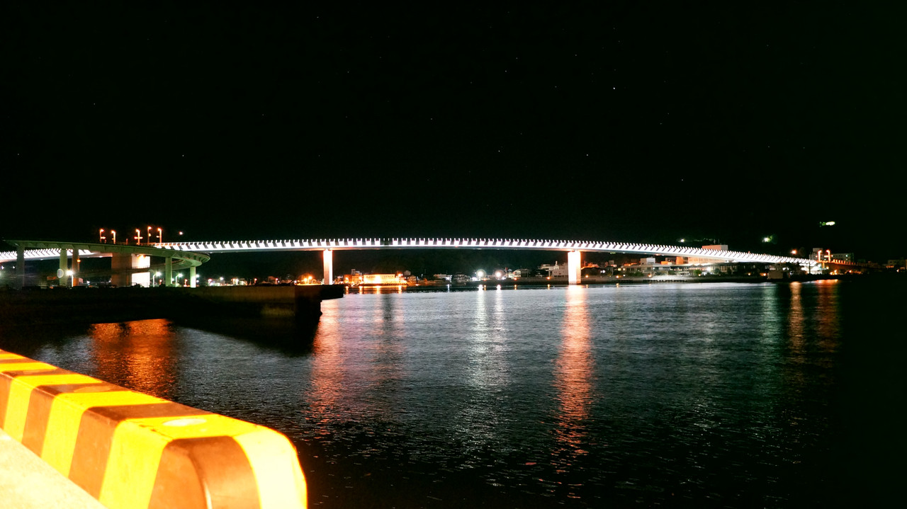 夜のハイヤ大橋がライトアップ