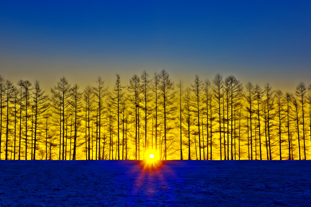 夕べは新年会だった事もあり、今朝は寝坊・・・。 今朝は気温も下がり、絶好の撮影日和だというのに、仕方がないので近くの畑の防風林越しの日の出を撮ってきました。(^^♪