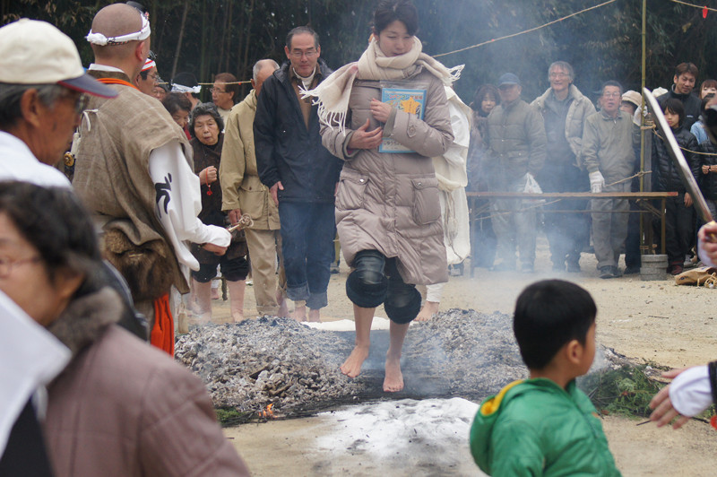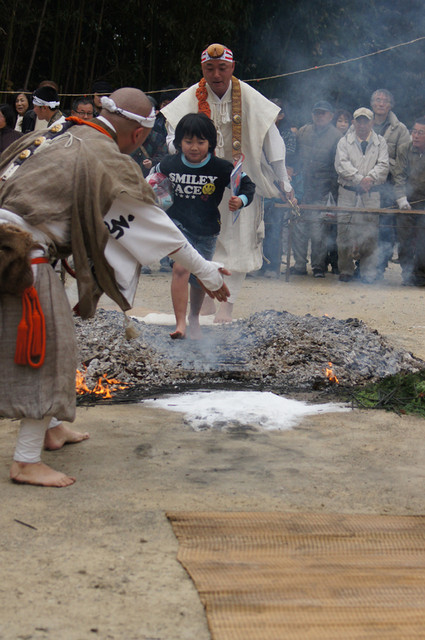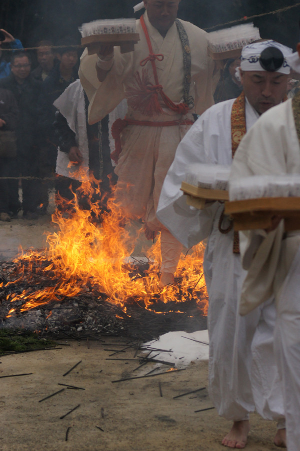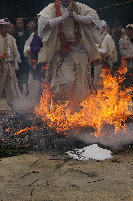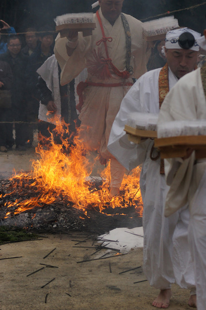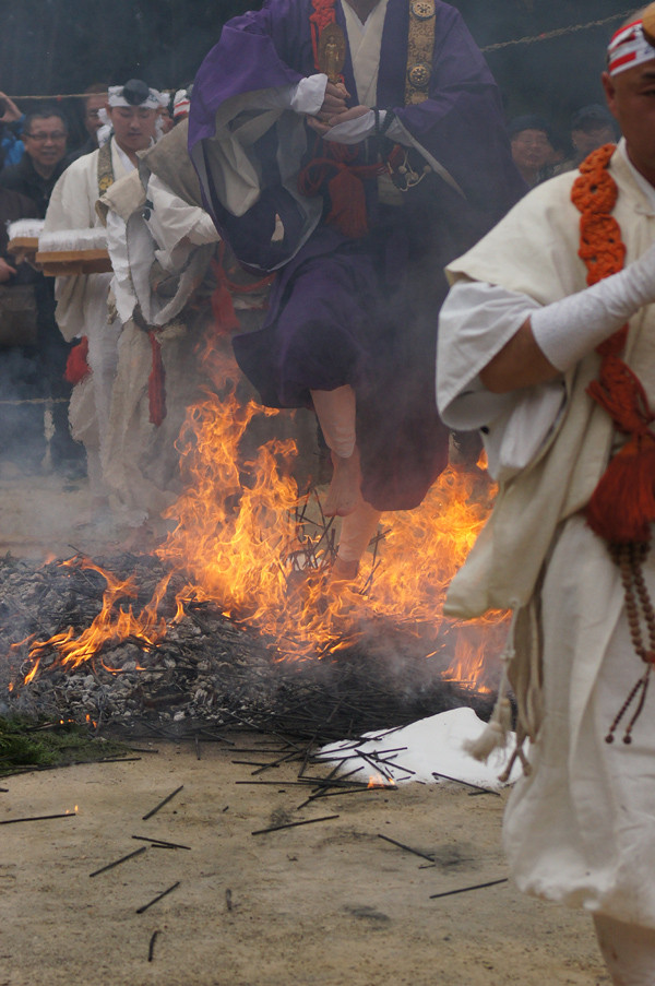 堺市南区豊田の福徳寺、柴燈大護摩祈願祭が行われました。 炎が上がる護摩壇の上を山伏装束の僧侶らが歩いて渡る「火渡り」で有名。 火渡りをすれば1年間無病息災に過ごせるとされ、 火が鎮まった後大勢の参拝者が護摩壇の上を歩く様子を見てきました。