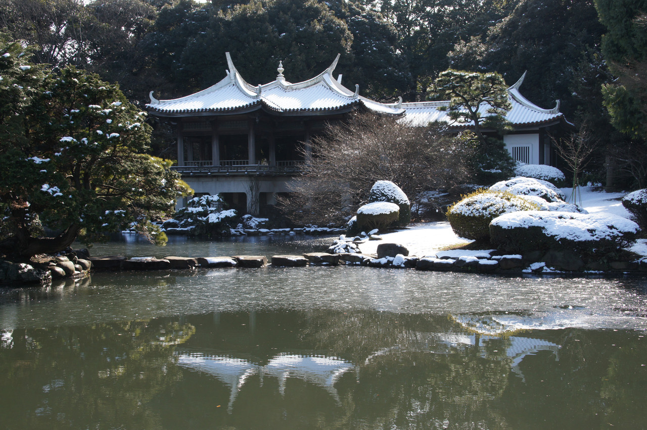 台湾閣はモノトーンの景色でした。池も半分は凍っていました。