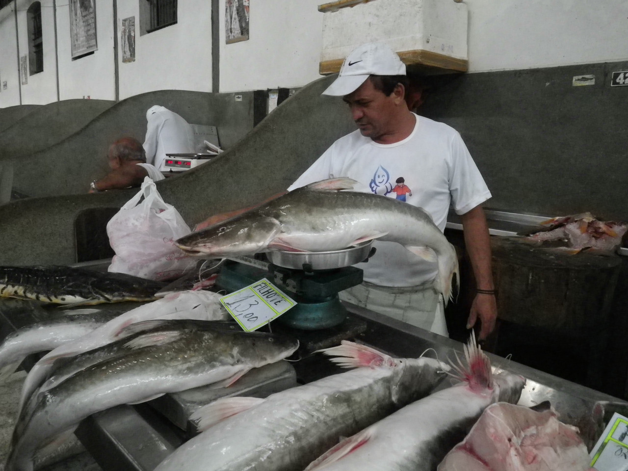 BelemのFish Marketで見つけたフィリョッチ、 日本でいうナマズ。全く泥くさくなくとても美味、ムニエルで食べるとまるでヒラメ~