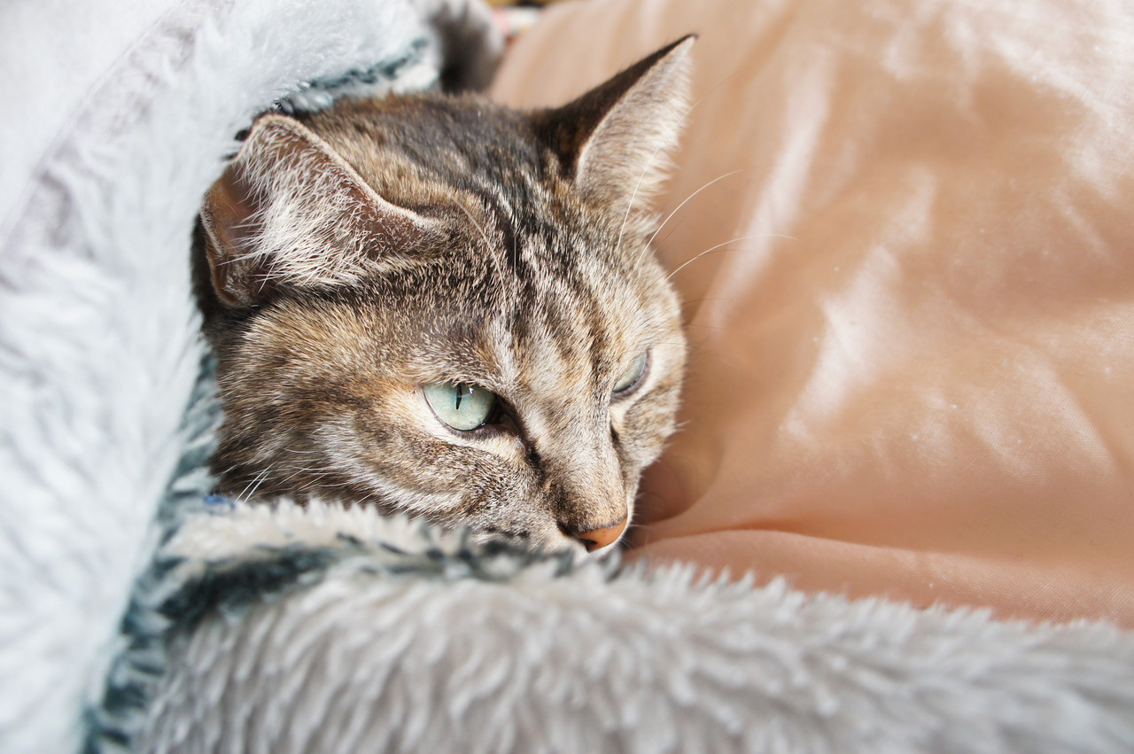 猫の小竹です。 寒い日は基本的に布団からでてきません 小竹は表情が豊かです♪